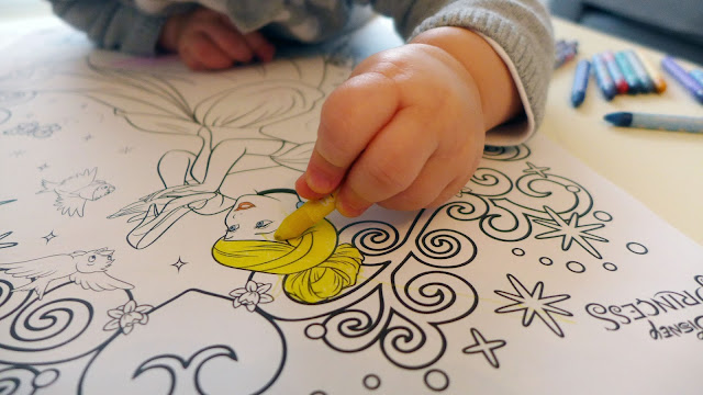 Z Niną zaczęłyśmy od kolorowanki w dużym formacie, tak aby była szansa, że zrozumie jak mieścić się w liniach. Na razie koloruję razem z nią. Bardziej to pokazuje jej o co chodzi:)